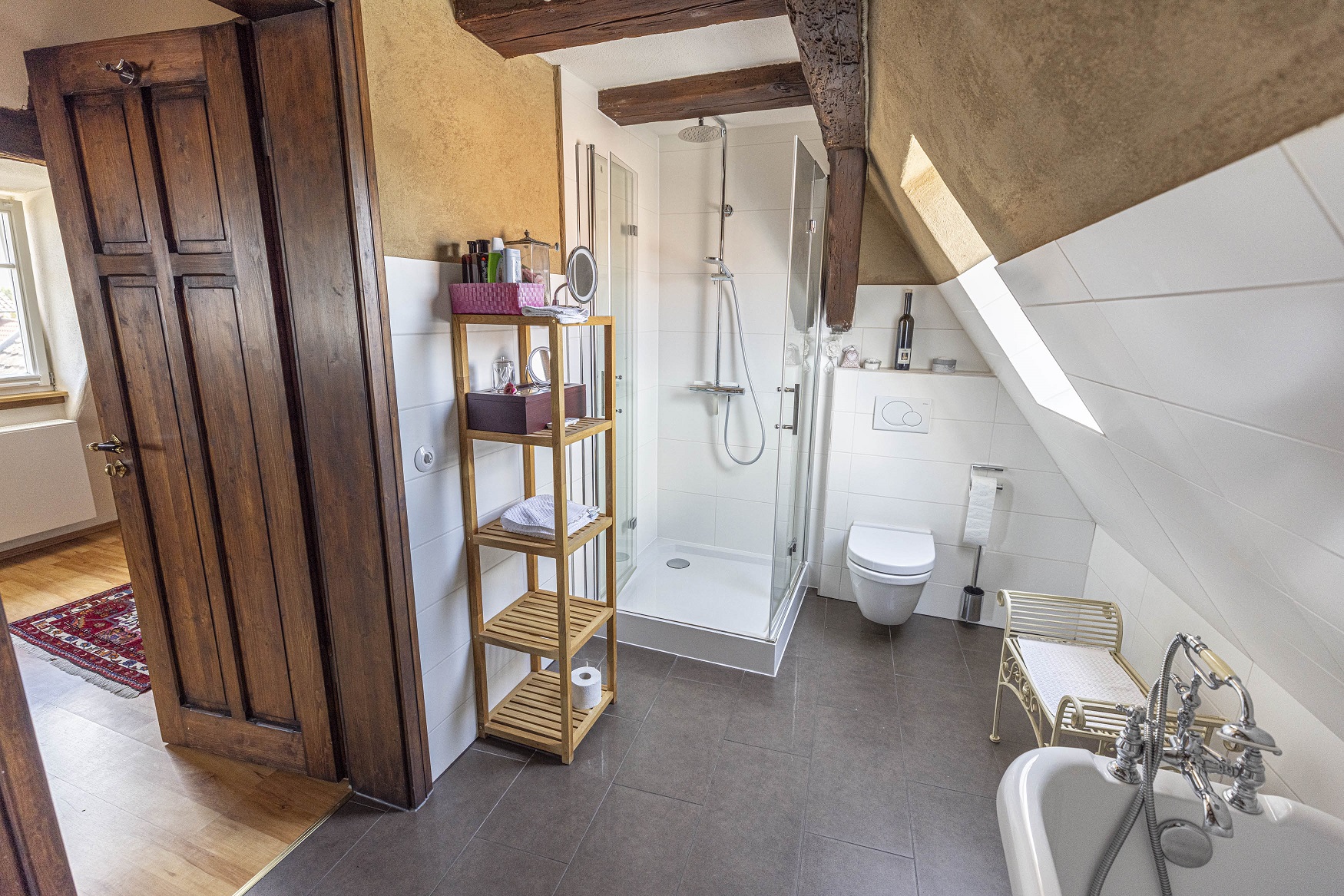 In einem der schönsten alten Fachwerkhäuser Venningens haben wir für unsere Gäste das Doktorenhof-Essig-Appartement in der ursprünglichen Gesindewohnung eingerichtet. Dieses kleine Refugium können Sie erleben und gleichzeitig unsere Essige in einer besonderen Atmosphäre verkosten. Die alte Gesindekammer ist noch im Original vorhanden und birgt eine kleine Wohlfühl-Überraschung.