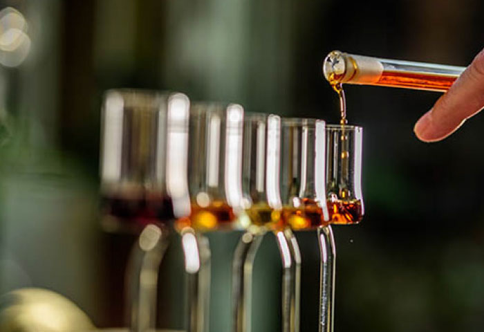 Tauchen Sie ein in das Mysterium saurer Kunst – bei einer Führung durch das Heiligste unseres Anwesens, den Essigkeller und die Kräuterkammer. Dort verweilen Sie in kerzenbeleuchteten Räumen, wo unsere Essige in hundertjährigen Fässern gären und reifen.