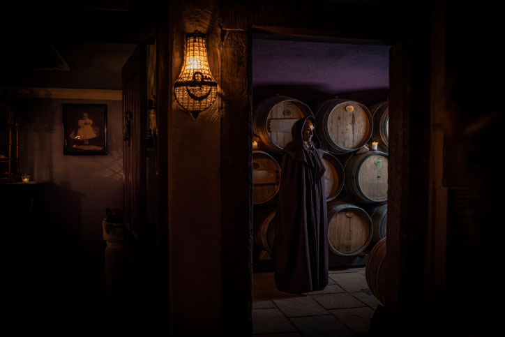 - in Roben gewandete Kellerführung durch das Sacrosanctum - das Allerheiligste – den kerzenbeleuchteten Essigkeller